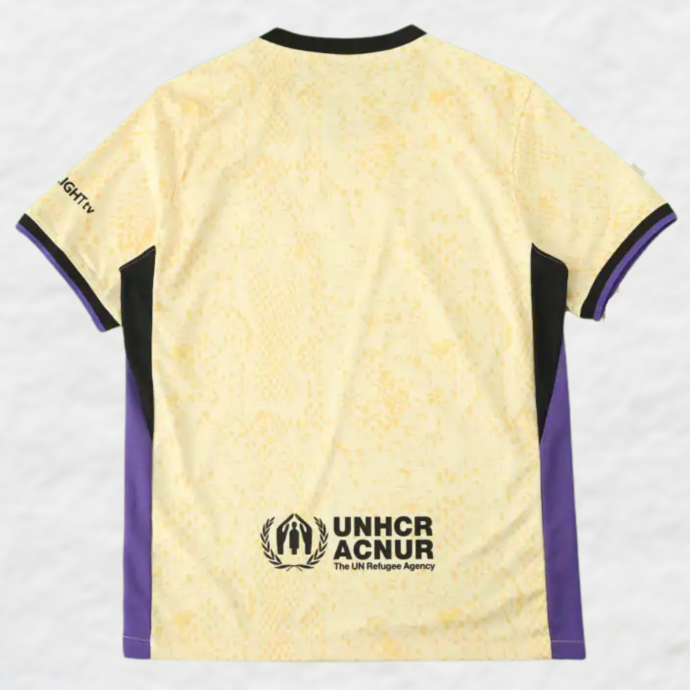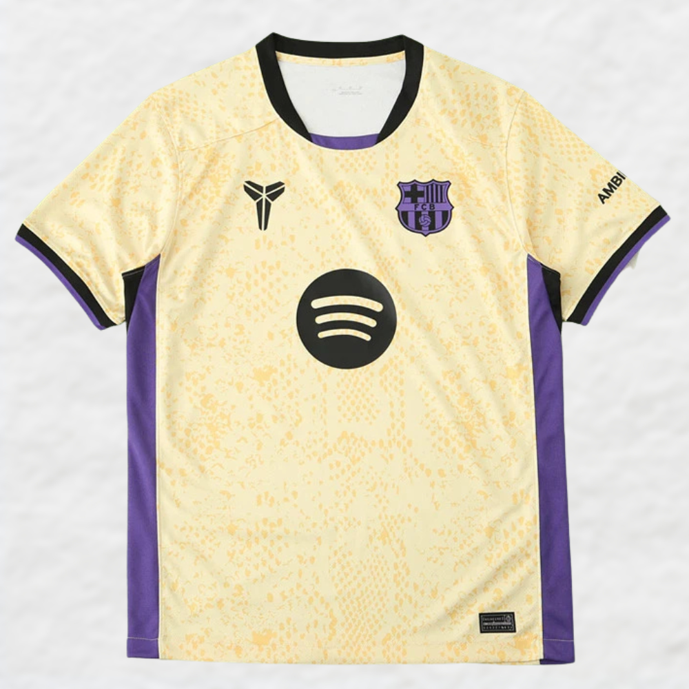 Introducing the Barcelona 2024/25 Mamba special edition shirt, which pays tribute to the great Kobe Bryant, with a sleek black design with striking gold accents.