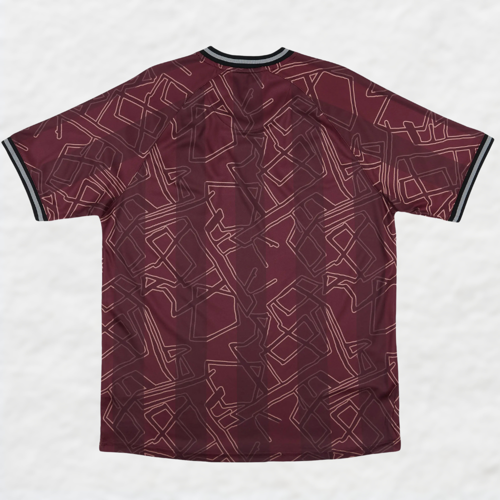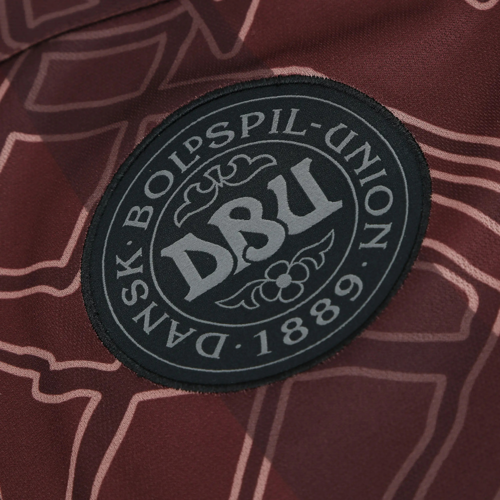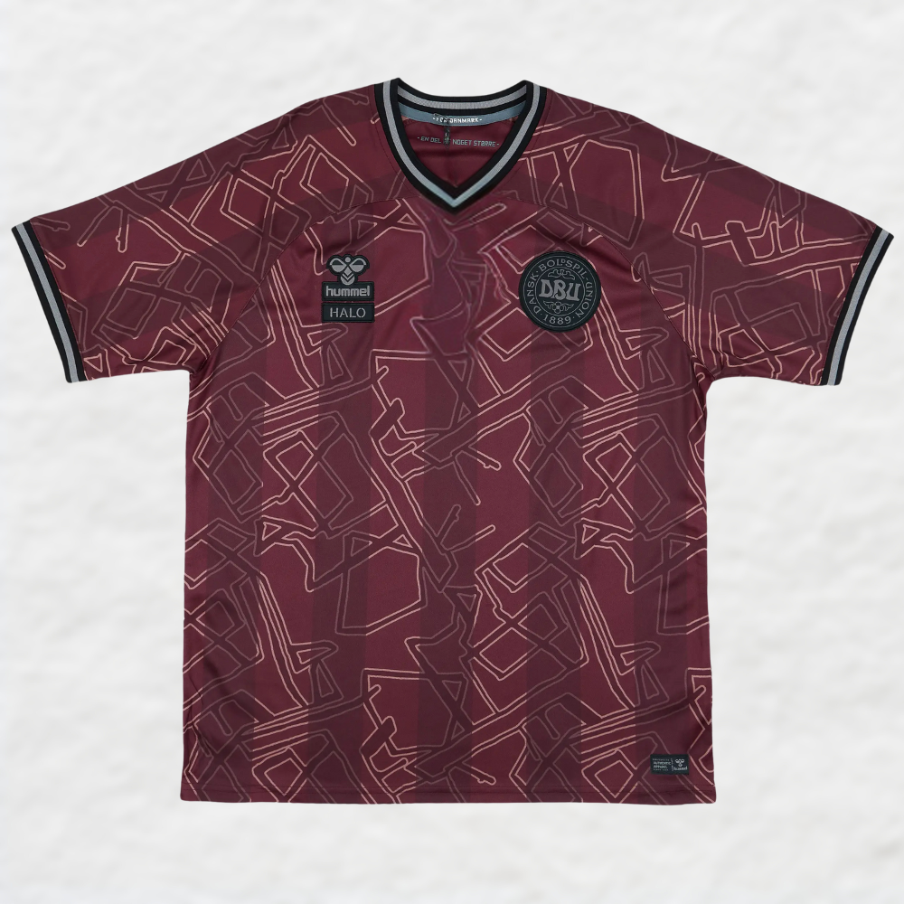 The Denmark 2024 Special Edition kit in collaboration with HALO, features dark red with a light pattern inspired by founder Helge Petersen's 1981 parachute jump.