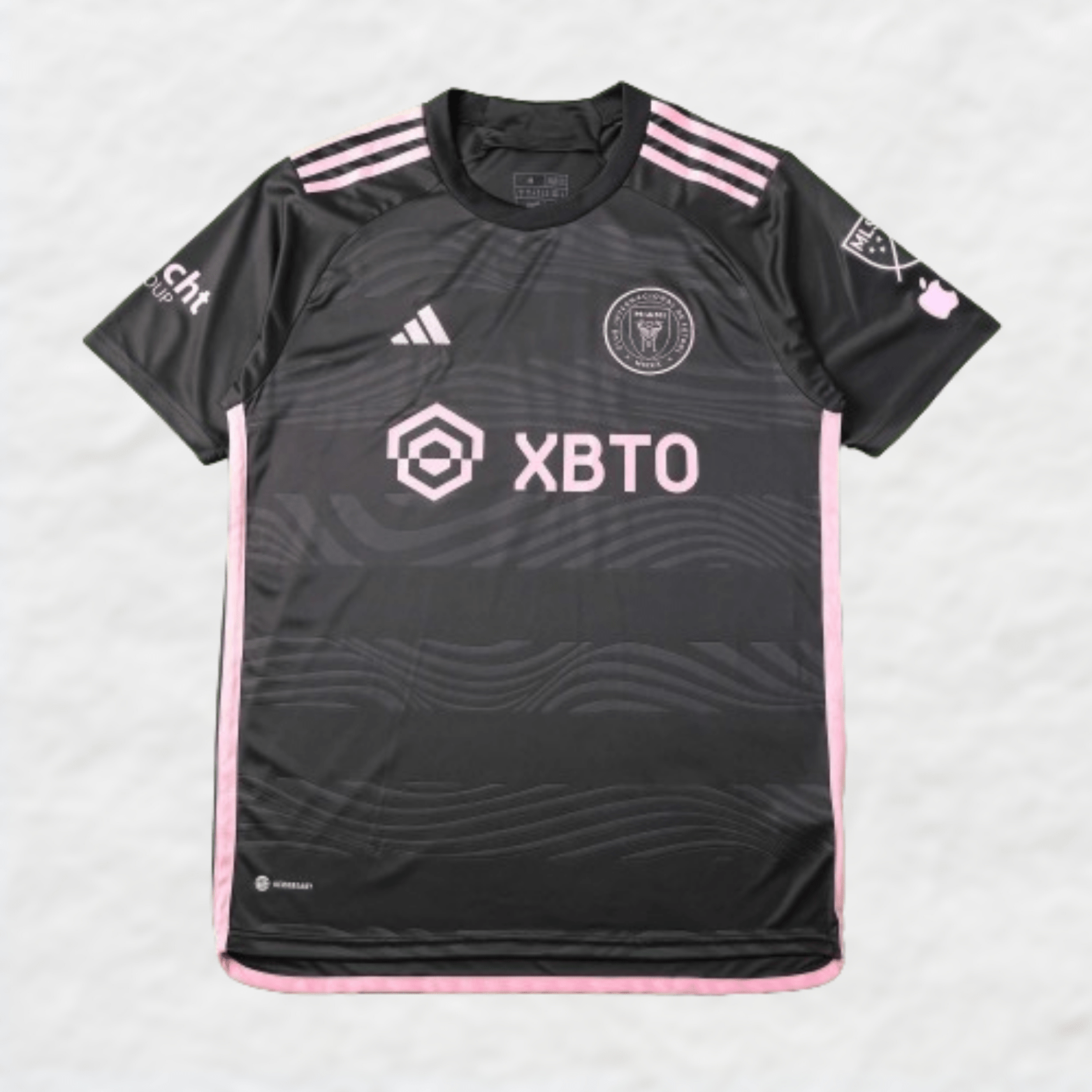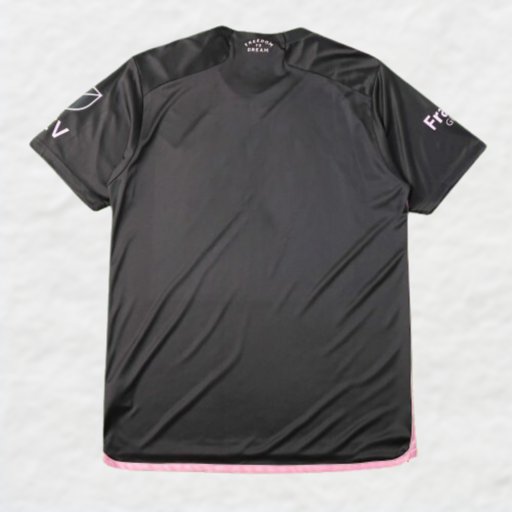 Introducing the Inter Miami 2023/24 Home Shirt. World-cup winner Lionel Messi has landed in Miami and will be donning this sleek black jersey as he takes the MLS by storm. Stylish and adorned with pink accents, this jersey is bound to grab attention on the streets. Grab yours now with 'Messi 10' on the back!