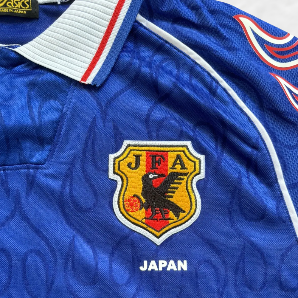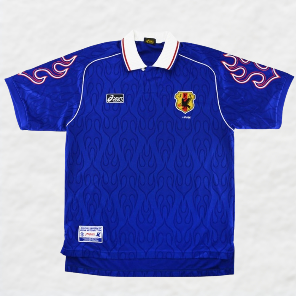 The Japan 1998 retro goalkeeper shirt is iconic in black with bold red flames across the chest and sleeves, showcasing a fierce look that embodies power and passion.