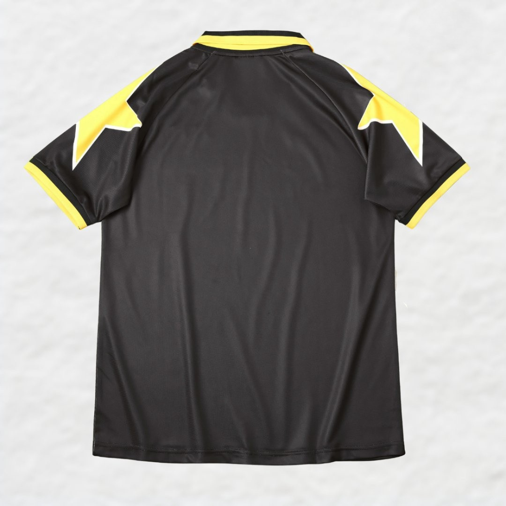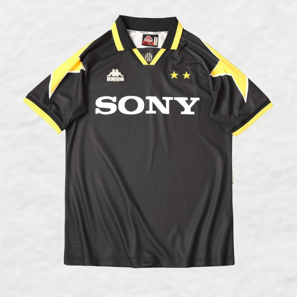 Presenting a contemporary twist on Juventus' iconic 1995/97 away jersey, our remake captures the essence of the mid-'90s era in a sleek black and yellow colorway. The design pays homage to retro football aesthetics while adding a touch of modern sophistication. Crafted from advanced materials, this jersey ensures comfort and style, whether you're on the pitch or in the stands. Embrace the rich history of Juventus with this unique fusion of retro charm and contemporary flair.